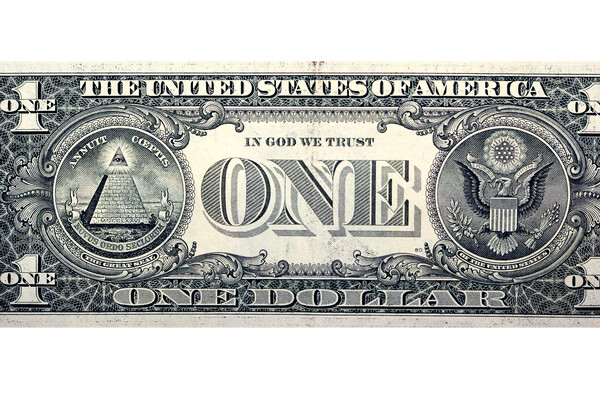 Сторонники теорий заговора считают, что Всевидящее око на доллар поместили масоны — чтобы увековечить свой вклад в развитие государства. Однако по официальной версии этот символ означает всемогущество бога, который следит за непрекращающимся развитием американской нации. Некоторые исследователи видят в изображении левый глаз египетского бога Гора. В древнеегипетских мифах говорится, что Гор лишился глаза в борьбе с богом хаоса Сетом. Бог Тот в свою очередь излечил потерянное око — и оно стало сильным амулетом, который обозначает мировой порядок. Масоны стали массово использовать этот знак позже его появления на долларе.