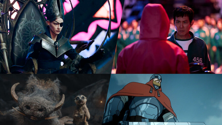 Кадры из фильма «Волшебник Изумрудного города», сериала «Игра в кальмара», фильма «Муфаса: Король Лев» и мультфильма «Киберслав»