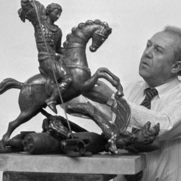 Скульптор Зураб Церетели с композицией «Святой Георгий уничтожает дракона», Тбилиси, 1989 год