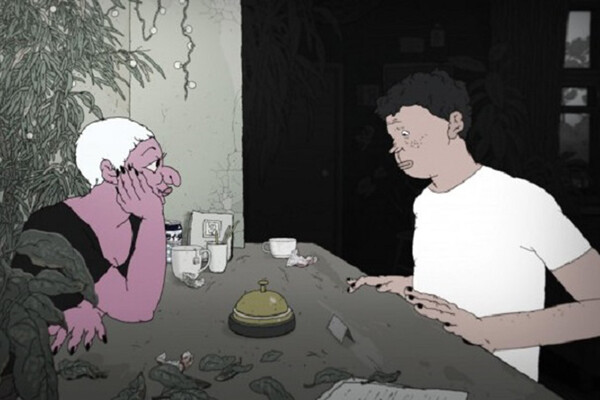 «Непокой» выполнен в технике ротоскопирования (анимация добывается путем покадровой перерисовки отснятого материала с живыми актерами), самые известные примеры ее применения — ленты Ричарда Линклейтера «Пробуждение жизни» и «Помутнение». Собственно, нынешний фильм как раз смахивает на параноидальное «Помутнение», которое музыка Сергея Курехина окончательно свела с ума и превратила в линчианский мамблкор. Нигде не сообщается, когда именно Шмельков замыслил историю о двух друзьях (раз мальчишка, два мальчишка), запертых в странном отеле, где творится форменная дичь, а постояльцы исчезают один за другим. Но воспринимается она неизбежно в контексте последних лет нашей жизни: выхода нет, все разлагается, мы бесповоротно застряли в бэд-трипе.