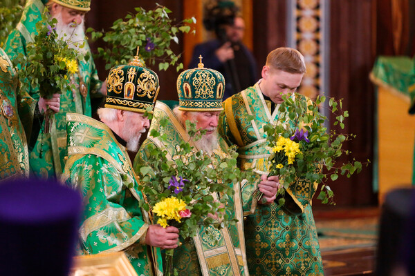 Зеленый цвет доминирует и в облачениях духовенства, напоминая о вечной жизни и обновлении души, даруемых Святым Духом.