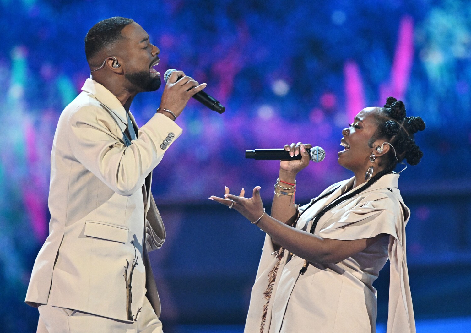 Актриса Стэфи Патель и певец Алексей Воробьев во время международного музыкального конкурса «Интервидение-2025» в концертном зале «Live Арена»
