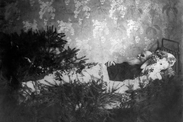 Лев Николаевич Толстой после кончины в квартире начальника железнодорожной станции Астапово, Рязанская губерния, 1910 год