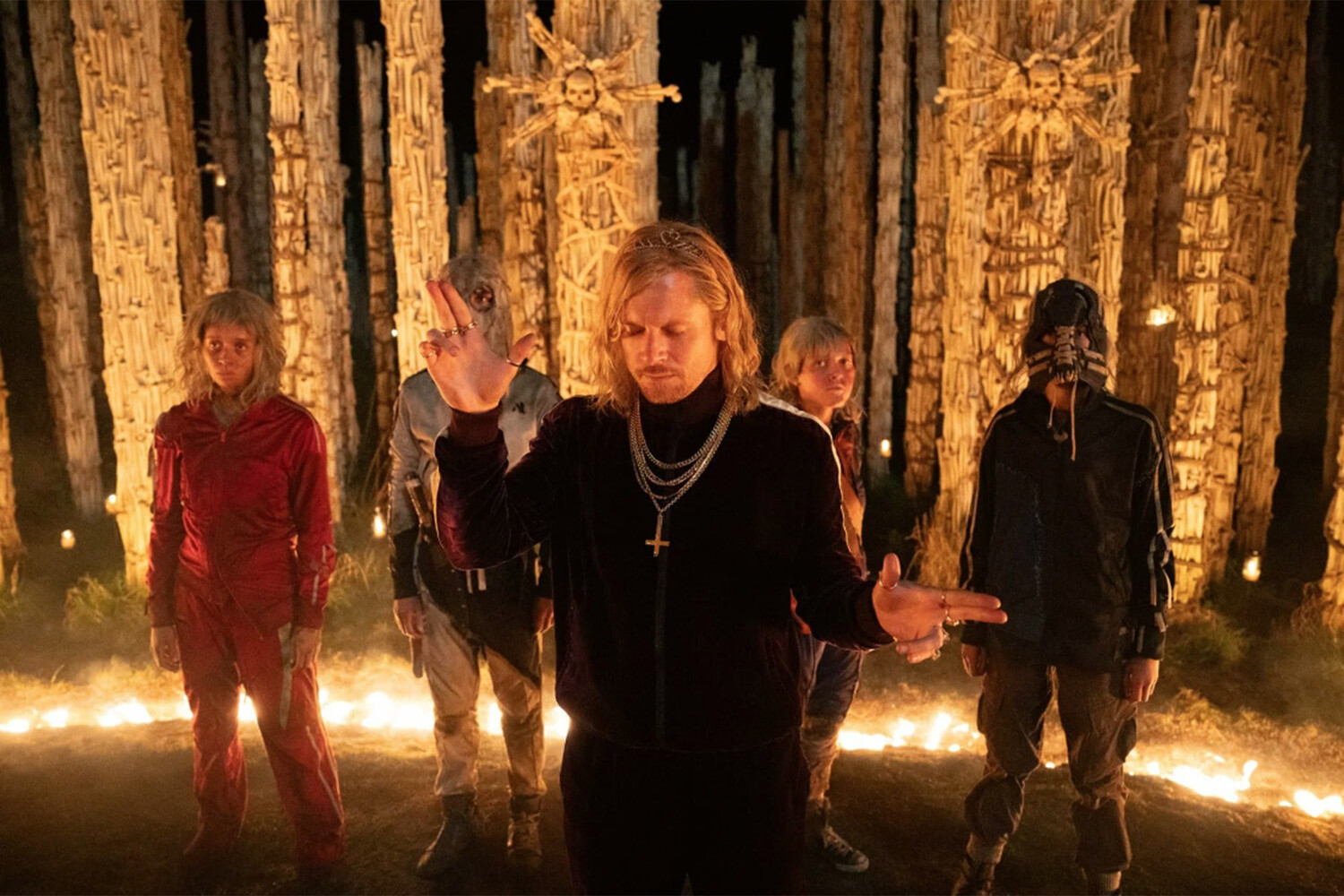 Насколько искренна его вера в дьявола, для нас остается загадкой (здесь картина намеренно пускает пыль в глаза), а вот в чем сомнений нет, так это в том, что в первую очередь он упивается собственной властью. Если «Грешники» Райана Куглера, где О'Коннелл только что играл похожего харизматика, влекущего на темную сторону, были парафразом «От заката до рассвета», то «Храм костей» в некоторых случаях заступает на территорию «Заводного апельсина».