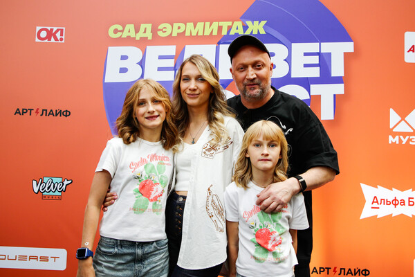Гоша Куценко, его супруга актриса Ирина Скриниченко, его дети Евгения и Светлана (слева направо), 2025 год