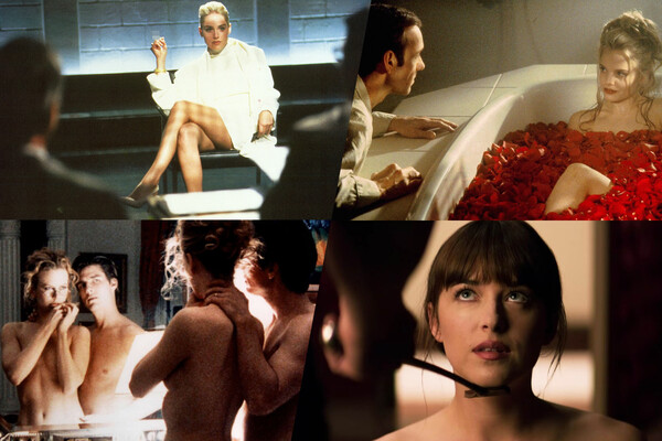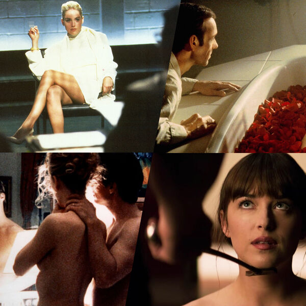 Кадры из фильмов «Основной инстинкт», «Красота по-американски», «С широко закрытыми глазами», «Пятьдесят оттенков серого»