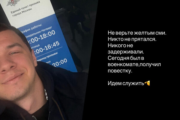 «Сегодня был в военкомате, получил повестку. Идем служить», — заключил рэпер.