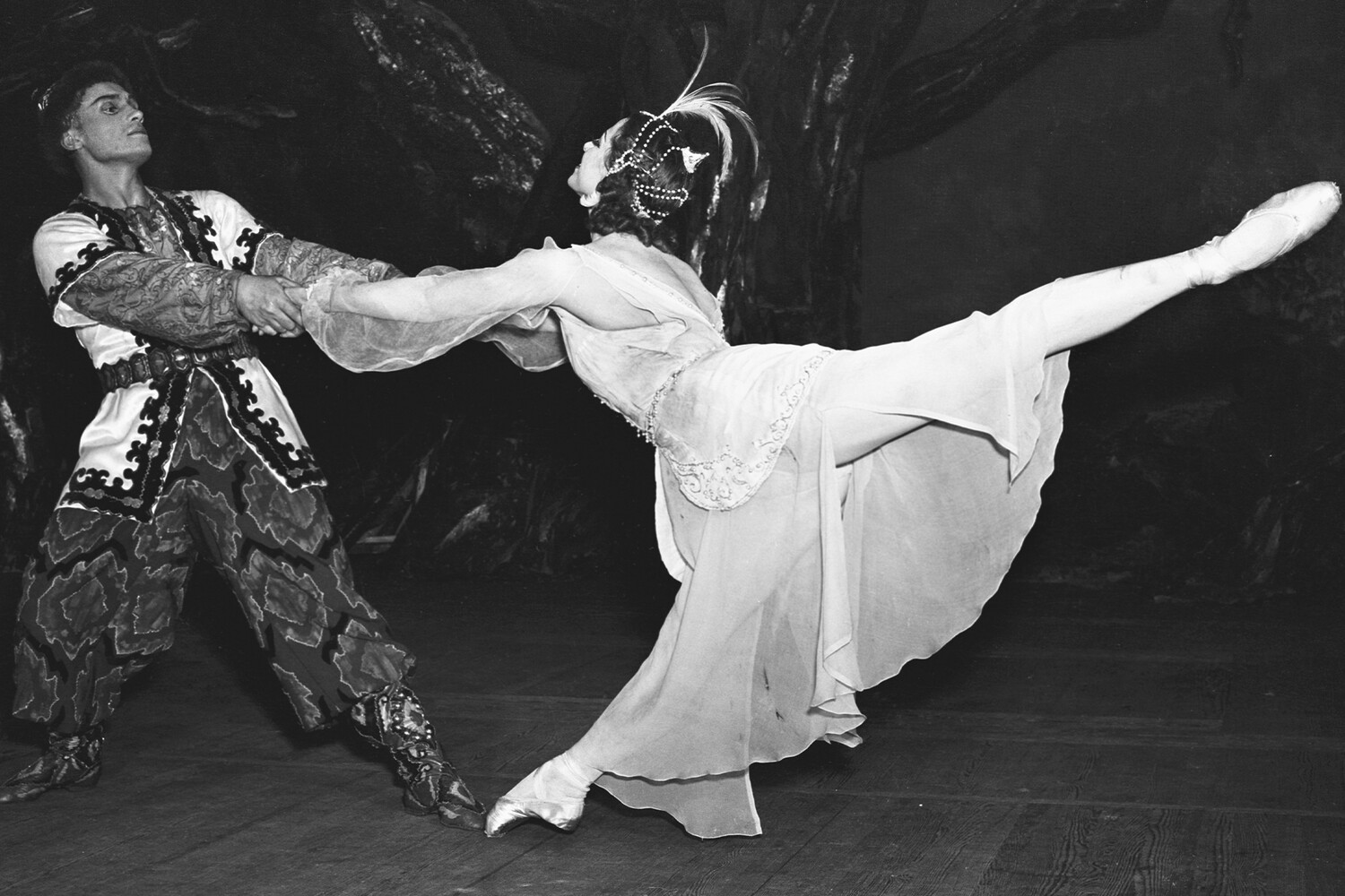 Сцена из балета Фарида Яруллина «Шурале». В роли девушки-птицы Сюимбике - Майя Плисецкая, охотник Батыр - Юрий Кондратов, 1955 год