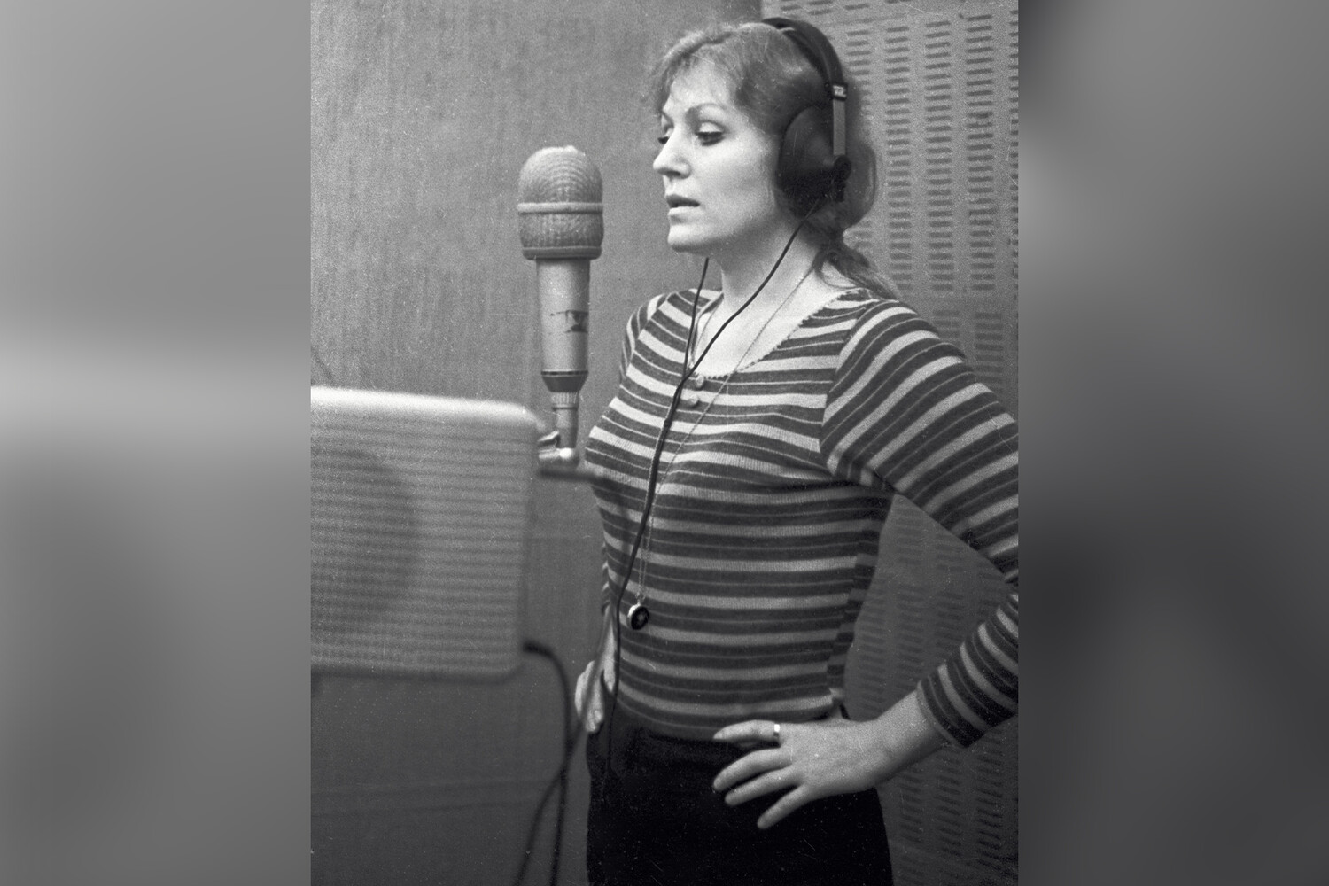 Анна Герман репетирует программу в звукозаписывающей студии фирмы «Мелодия», 1979 год