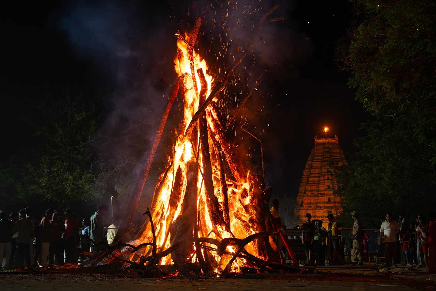 Первый вечер праздника называется Холика Дахан («сожжение Холики»). С наступлением сумерек устраивают ритуальный костер: собирают хворост, дрова и мусор, устанавливают чучело или украшенное дерево, символизирующее злую демоницу Холику. В этом праздник напоминает российскую Масленицу. После захода солнца чучело поджигают под пение и танцы. Согласно поверьям, огонь помогает прогнать злых духов и остатки зимних холодов. В некоторых регионах через костер прогоняют скот, а смельчаки ходят по углям — зола костра Холи считается священной и приносящей удачу.