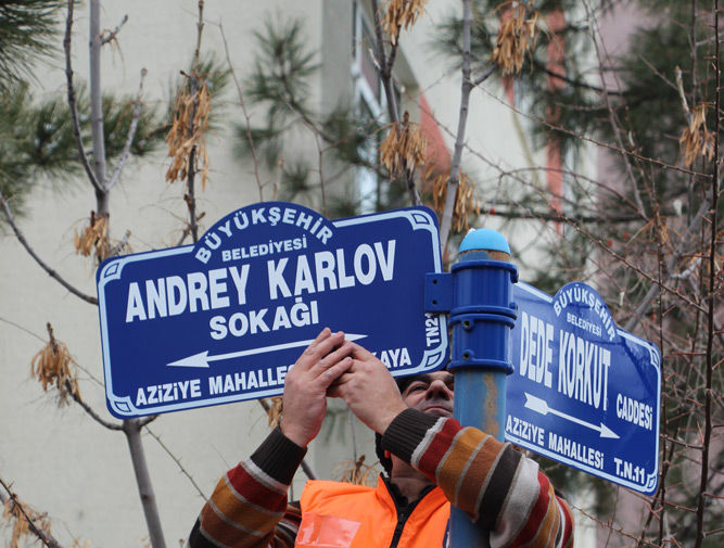 Ранее имя посла России в Турции Андрея Карлова получила улица Карягды в Анкаре, на которой располагается российское посольство.