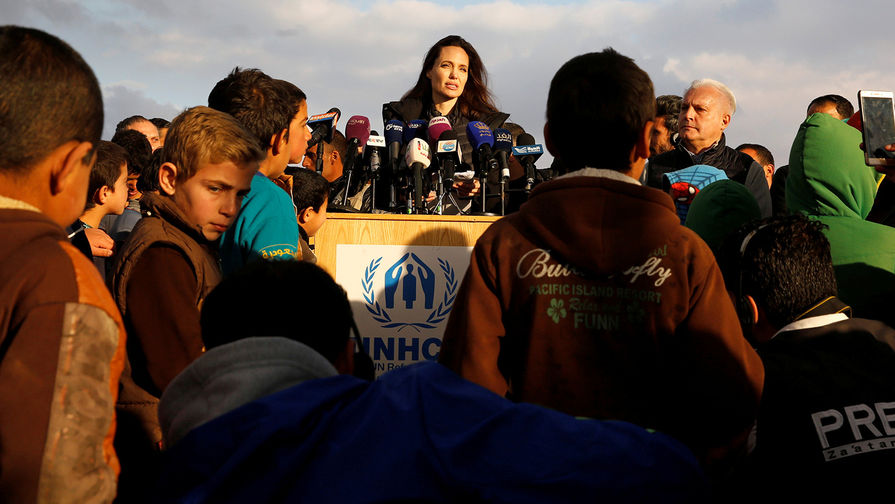 Американская актриса и режиссер Анджелина Джоли взяла своих дочерей Захару и Шайло на встречу с сирийскими беженцами в Иорданию, сообщает People.