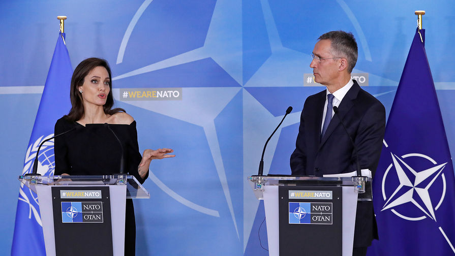 Американская актриса, спецпосланник управления верховного комиссара ООН по делам беженцев Анджелина Джоли посетила штаб-квартиру НАТО в Брюсселе, где встретилась с генеральным секретарем этой организации Йенсом Столтенбергом, сообщает Daily Mail.