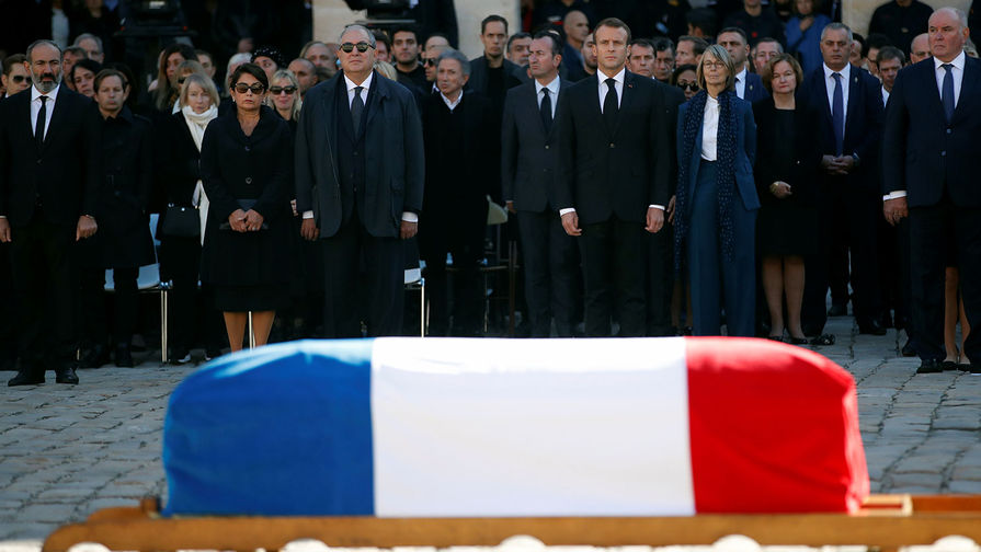 Сказать прощальные слова над гробом Азнавура, скончавшегося 1 октября в возрасте 94 лет, в мемориальный комплекс «Дом инвалидов» прибыли президент Франции Эммануэль Макрон, премьер-министр Армении Никол Пашинян, бывшие президенты Франции Николя Саркози и Франсуа Олланд, актер Жан-Поль Бельмондо и другие политики и знаменитости.