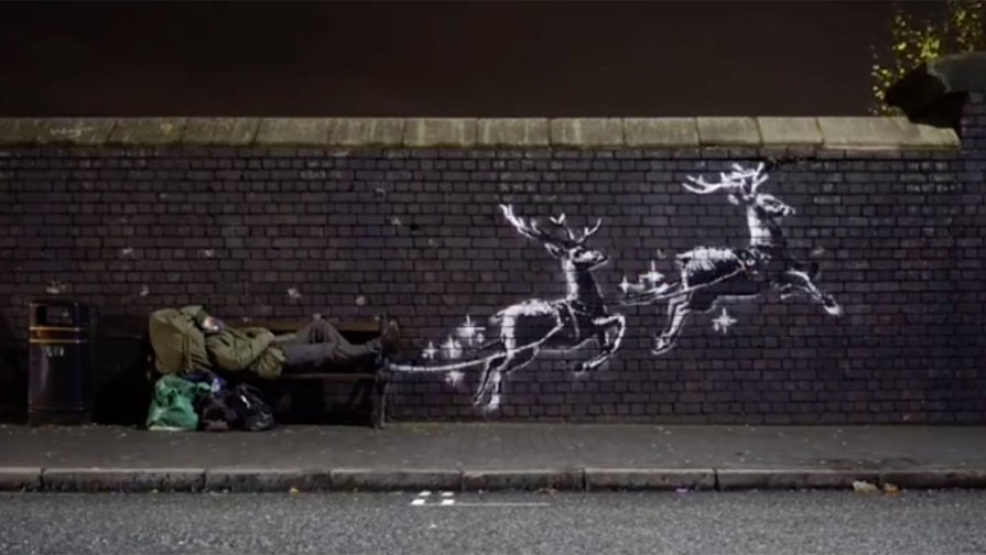 Рождественское граффити уличного художника Бэнкси появилось в британском городе Бирмингеме. Об этом художник сообщил на своей странице в Instagram, выложив видео.