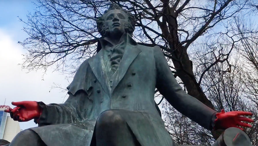 Ранее стало известно, что неизвестные разрисовали монумент Пушкину красной краской.