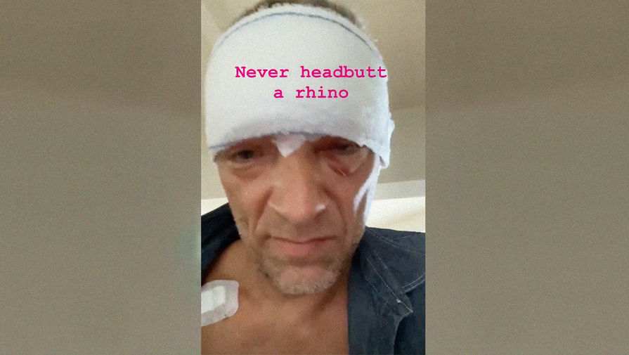 Известно, что несколько дней назад он упал со скутера на юго-западе Франции и получил травму лица. У себя в Instagram артист показал разбитую голову и синяк под глазом и пошутил, что врезался в носорога.