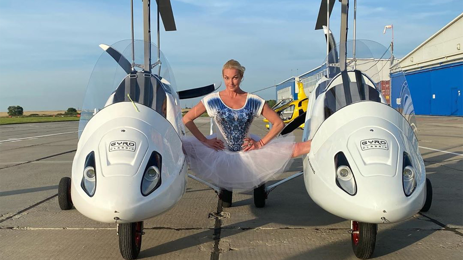 Балерина Анастасия Волочкова опубликовала в сети фотографию со шпагатом, исполненным на двух гибридах самолета и вертолета. Снимок был размещен в ее Instagram.