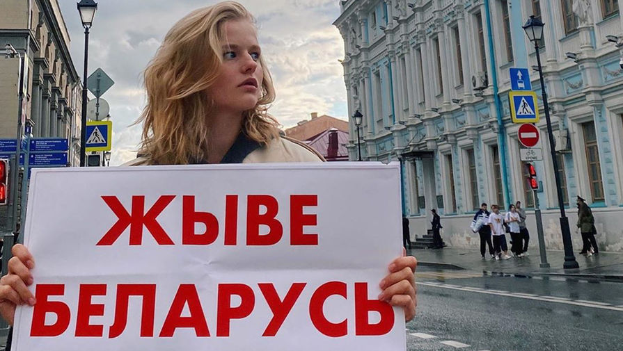 Российская актриса белорусского происхождения Александр Бортич вышла на пикет около посольства Белоруссии в Москве. Фото с пикета она опубликовала на своей странице в Instagram.