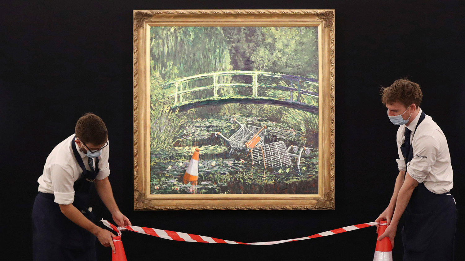 В своей работе уличный мастер сделал отсылку к шедевру Клода Моне «Японский мостик». По данным Sotheby's, итоговая цена превысила первоначальную оценку. Торги длились всего восемь минут, картину приобрел азиатский инвестор.