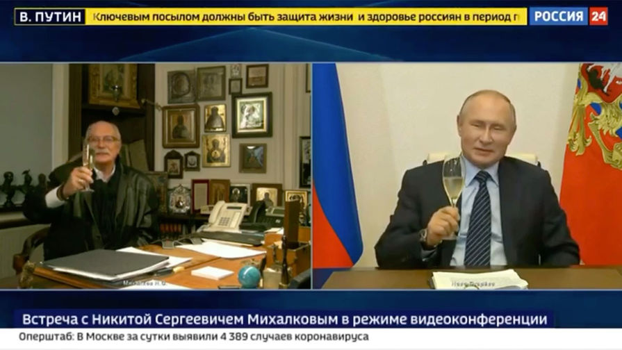 Никита Михалков 21 октября отметил 75-летие. Владимир Путин поздравил его по видеосвязи, президент и режиссер подняли бокалы за здоровье друг друга.