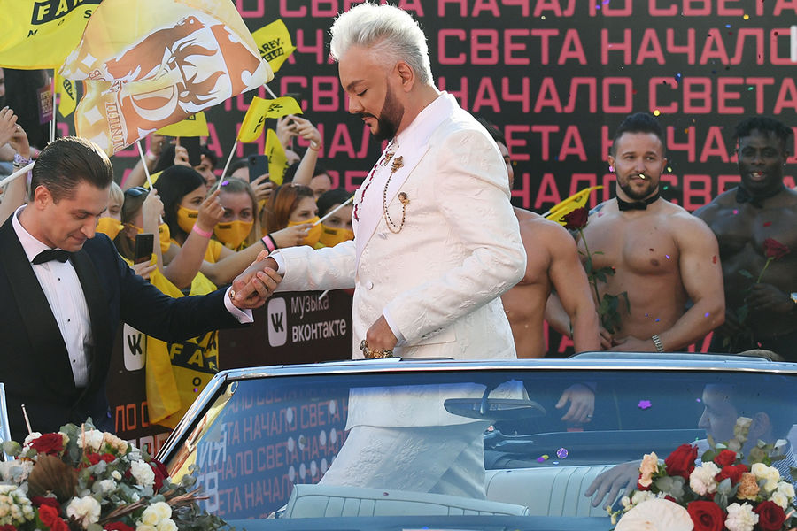 Известно, что тиктокер Даня Милохин пришел на премию наполовину в мужском, наполовину женском наряде, блогер Игорь Синяк — в черном женском платье, а блогер Дава с Филиппом Киркоровым в свадебных фраках вышли на красную дорожку в окружении мужчин-моделей топлес.