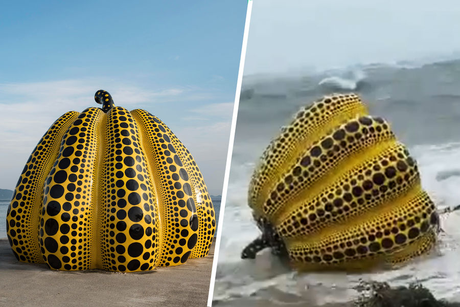 Скульптуру тыквы японской художницы Яёи Кусама смыло в море во время шторма недалеко от Наосимы, сообщает The Guardian.