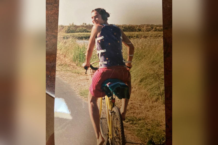 Блум опубликовал старое фото, на котором он запечатлен едущим на велосипеде в специальном корсете.