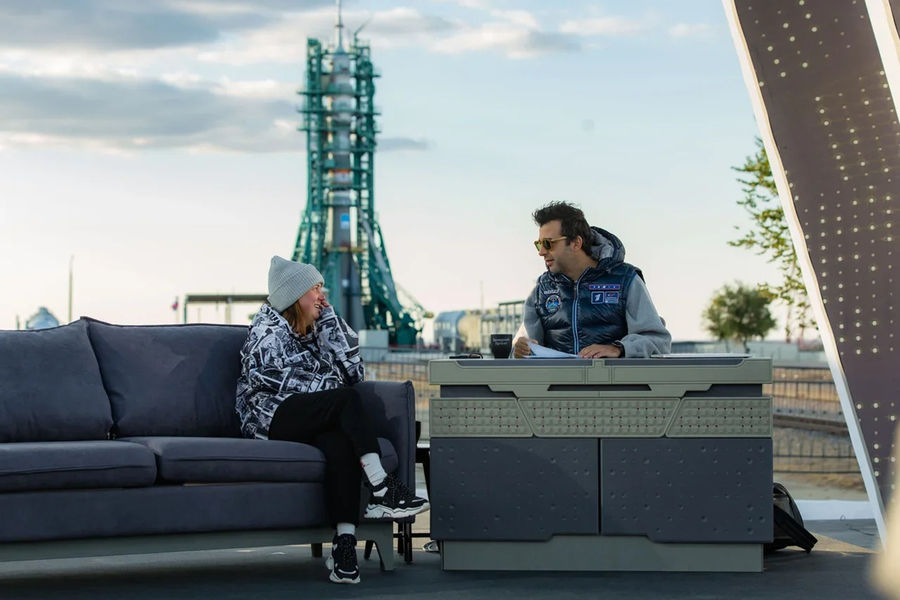 Согласно пресс-службе шоу, выездная студия была возведена в степи прямо на пусковой площадке, с которой позднее стартует ракета с экипажем в составе командира Антона Шкаплерова, режиссера Клима Шипенко и актрисы Юлии Пересильд.