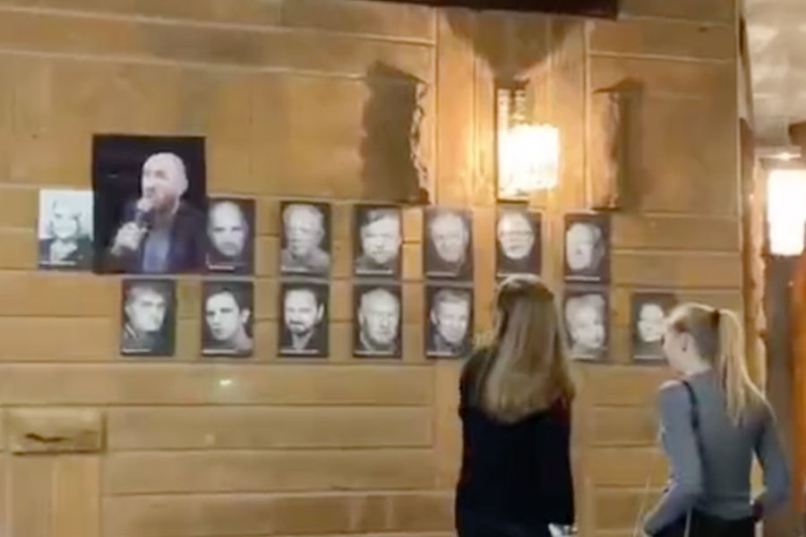 Директор МХАТа им. Горького Владимир Кехман предоставил «Газете.Ru» видео с камер наблюдения, на котором видно, как группа молодых людей сворачивает плакат с его портретом, вывешенным на стену в фойе рядом с фото других руководителей театра и именитых артистов.