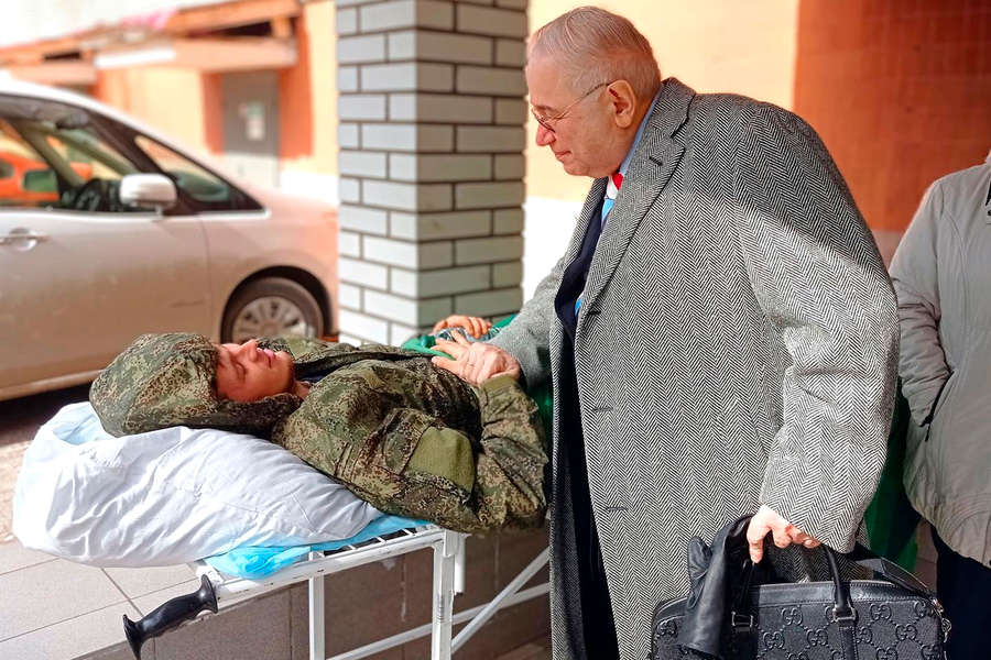 Комик Евгений Петросян посетил 7-й Центральный военный клинический авиационный госпиталь, чтобы поддержать раненых российских военных. Об этом артист сообщил в личном блоге.
