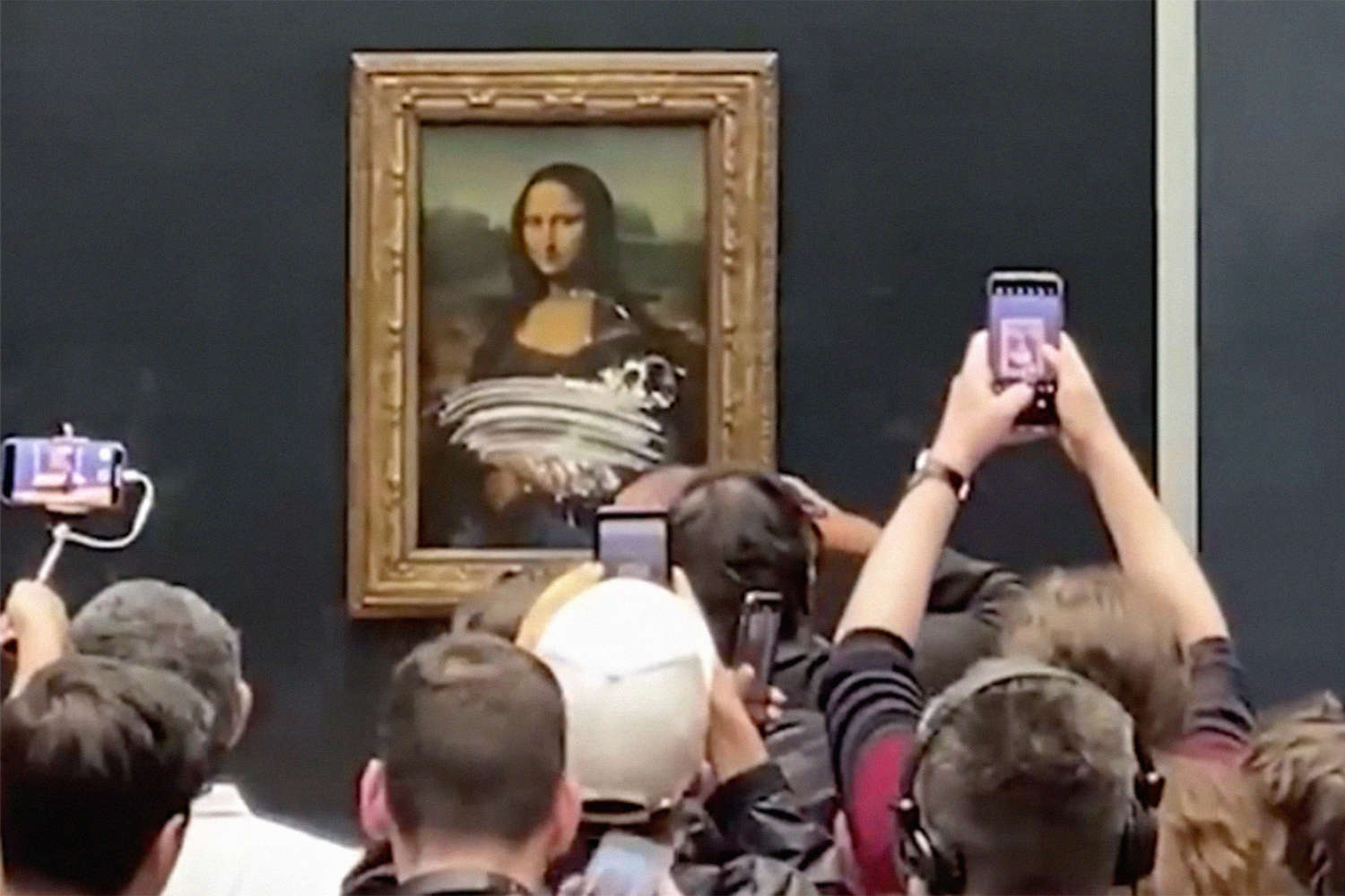 По информации издания, человек бросил в известное полотно торт, находясь в большой толпе.