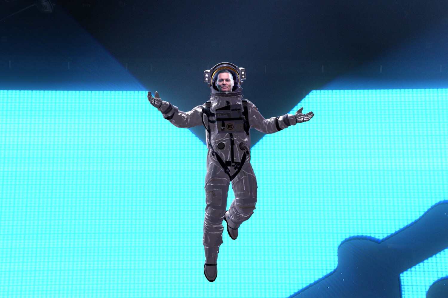 59-летний артист появился над сценой спортивного комплекса Пруденшал-центр в американском Ньюарке в виде голограммы. Из скафандра он рассказал, что ему нужны были деньги. «Знаете что? Мне нужна была работа», — сказал он.