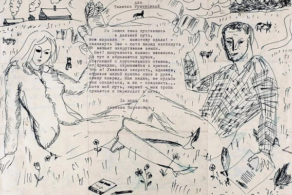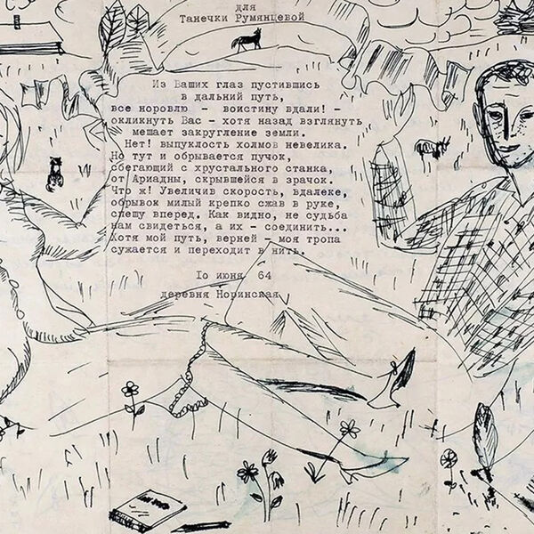 Среди редких лотов — собственноручное письмо с рисунками Иосифа Бродского, адресованное Татьяне Румянцевой (1964), общей подруге Бродского и его избранницы, петербургской художницы Марианны Басмановой.