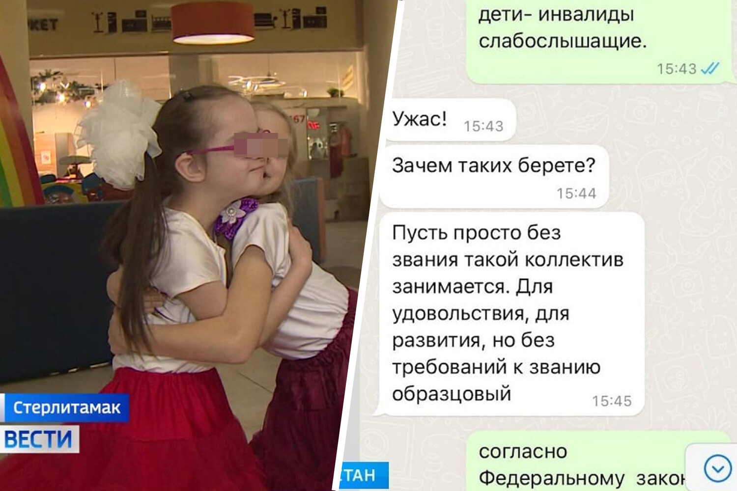 Родители и педагоги коллектива попросили ведущего специалиста Республиканского центра народного творчества присвоить коллективу звание «образцового», добавив, что в группе есть дети со слабоумием, синдромом Дауна и слабослышащие. «Ужас! Зачем таких берте?» — ответила Кондакова, предложив коллективу заниматься «для удовольствия» без званий.