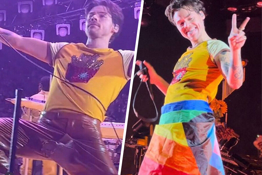 При попытке встать в эффектную позу на Стайлсе спереди лопнули брюки. Певец прикрыл прореху и повязал лопнувшие брюки ЛГБТ-флагом, после чего продолжил выступление. «У меня лопнули брюки. Нужно извиниться перед зрителями на первом ряду, полагаю. Это ведь шоу для всей семьи. Вот вы, сэр, в порядке? Заверяю, так не было задумано», — посмеялся он.