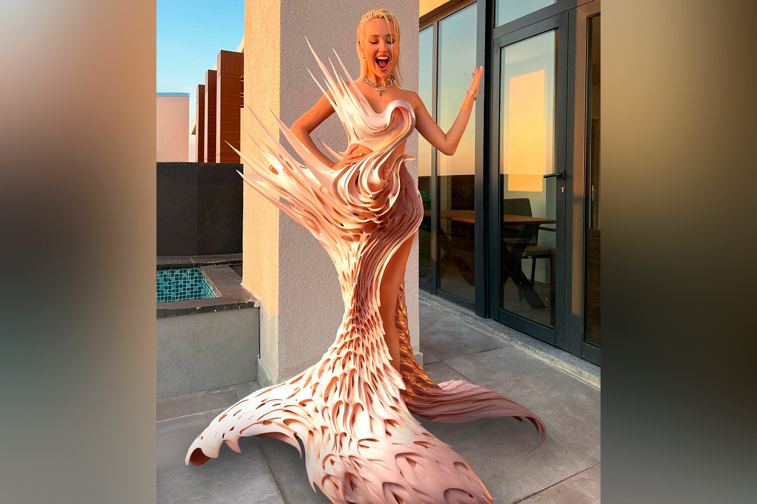Кока опубликовала снимок в виртуальном платье, созданном китайской модельершей Yimeng Yu. В публикации с сюрреалистичным цифровым нарядом артистка пошутила над Джастином Бибером. Она написала, что забыла у певца всю свою одежду. «Пришлось диджитал-платье надеть!» — отметила музыкантка.