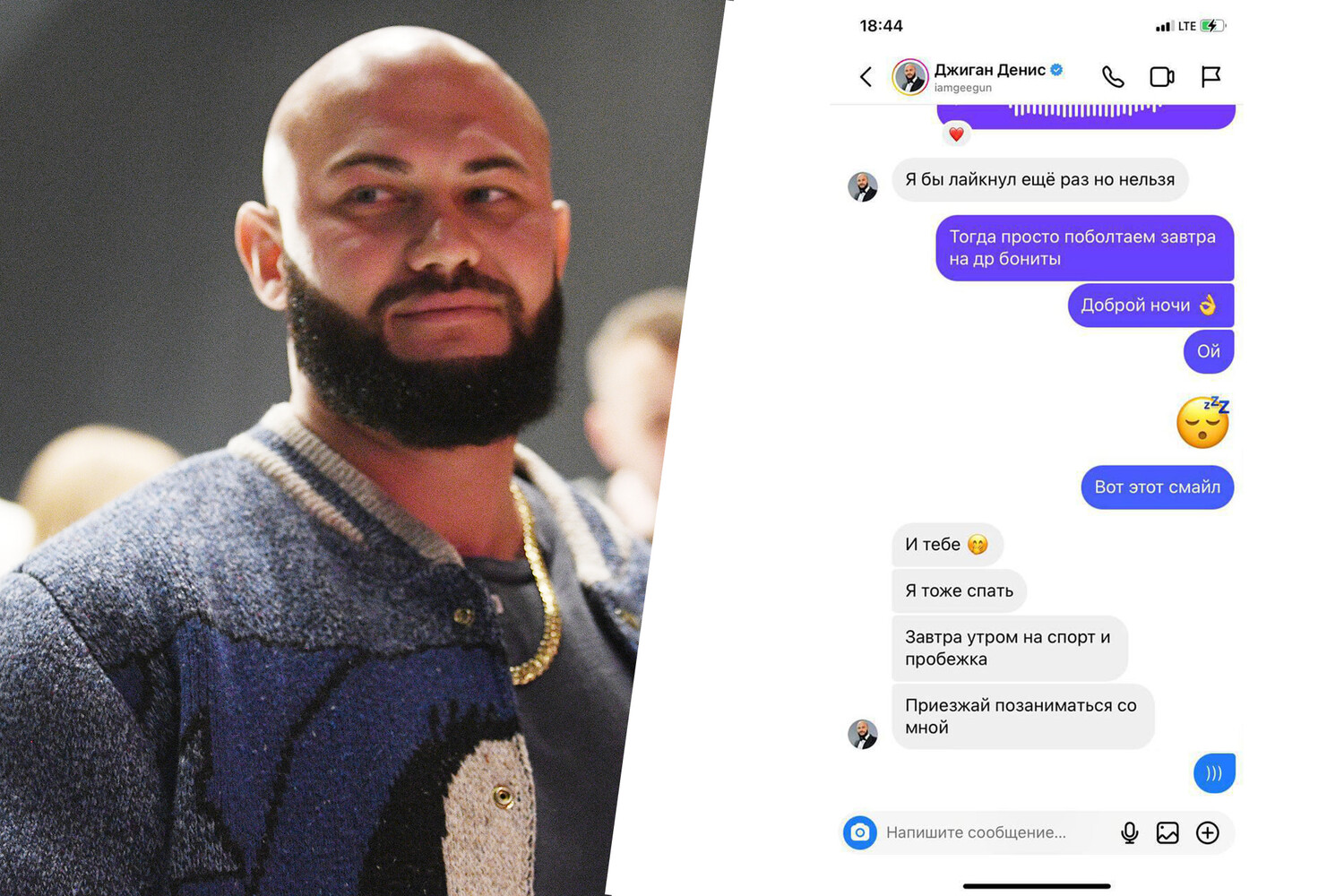 На опубликованных скриншотах видно, как рэпер общается с одним из пользователей Instagram (владелец компания Meta признана в России экстремистской и запрещена). Они обсуждают дела, спорт и последние события в жизни друг друга. На одном из снимков видно, как Джиган приглашает собеседника на совместную пробежку.