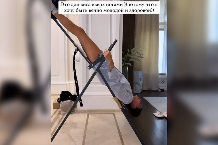 Блогер Оксана Самойлова в своем Instagram (владелец компания Meta признана в России экстремистской и запрещена) в ироничной манере пообещала ежедневно делать упражнения на инверсионном столе ради сохранения здоровья и молодости.