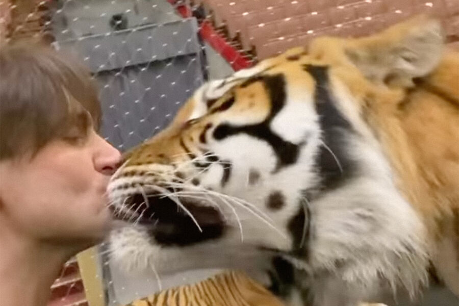 Дрессировщик и шоумен Эдгард Запашный опубликовал ролик в Instagram (владелец компания Meta признана в России экстремистской и запрещена), как целует тигра в нос.