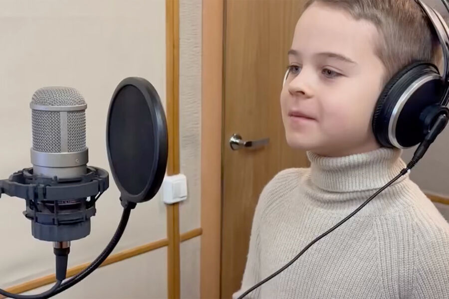 Лазарев опубликовал кадры со студии, в которой сын записывает песню для новогоднего эфира. Певец рассказал, что мальчик «дико» переживал и нервничал, но справился.