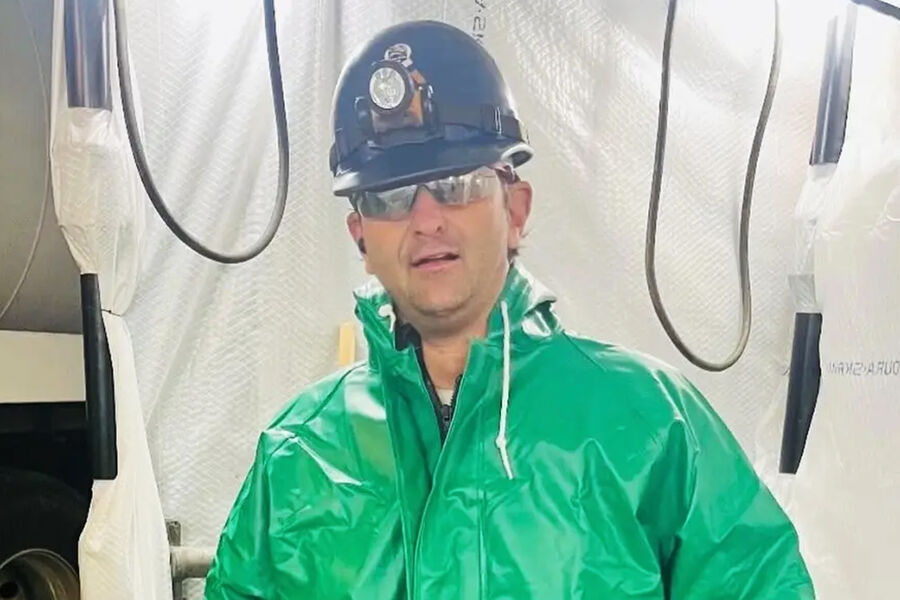 На снимке 46-летний продюсер, обычно скрывающийся от прессы и ведущий закрытую жизнь, стоит в зеленом костюме и шлеме.