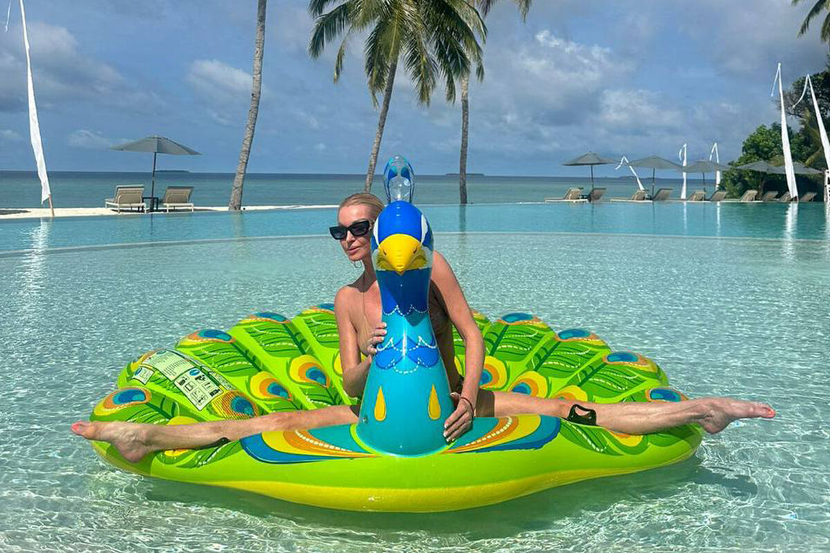 Балерина Анастасия Волочкова поделилась фотографиями своего фирменного шпагата. Сейчас звезда отдыхает на Мальдивах. На одном из снимков в Instagram (владелец компания Meta признана в России экстремистской и запрещена) звезда позирует в бикини на надувном матрасе в виде Жар-птицы.