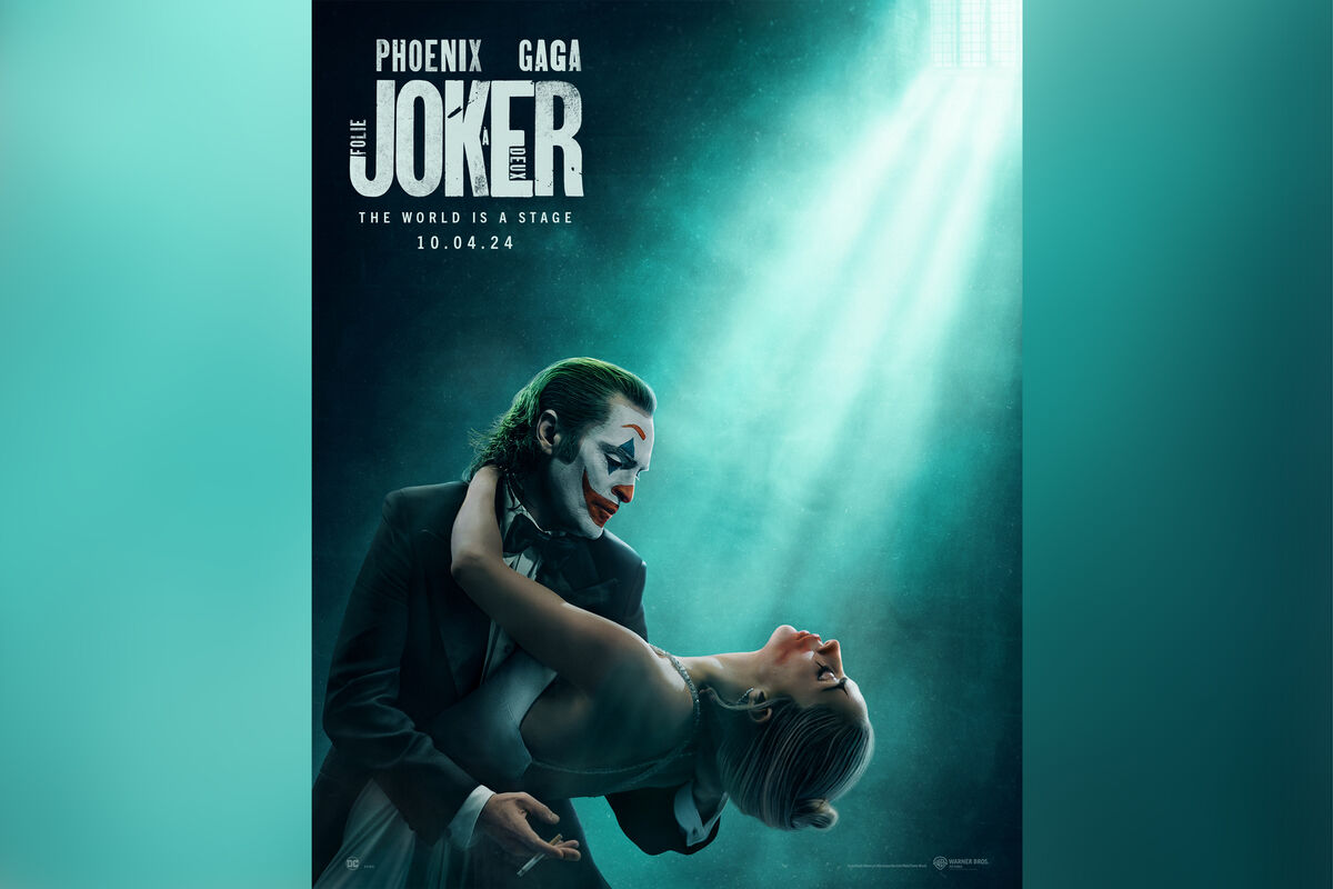 В кадре из фильма «Джокер: Безумие на двоих» изображены только Феникс в образе Джокера и Леди Гага в образе Харли Куинн. Антигерои танцуют в свете, падающем через решетку.