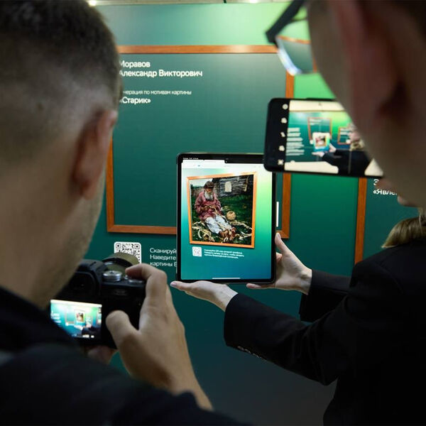 Отсканировав QR-код, посетители выставки могут в дополненной реальности увидеть облики таких полотен, как «Старик» Абрама Архипова, «Портрет Званцевой» Ильи Репина, «Похищение Европы» Дессарта, «Казак гребец» Василия Сурикова и другие.