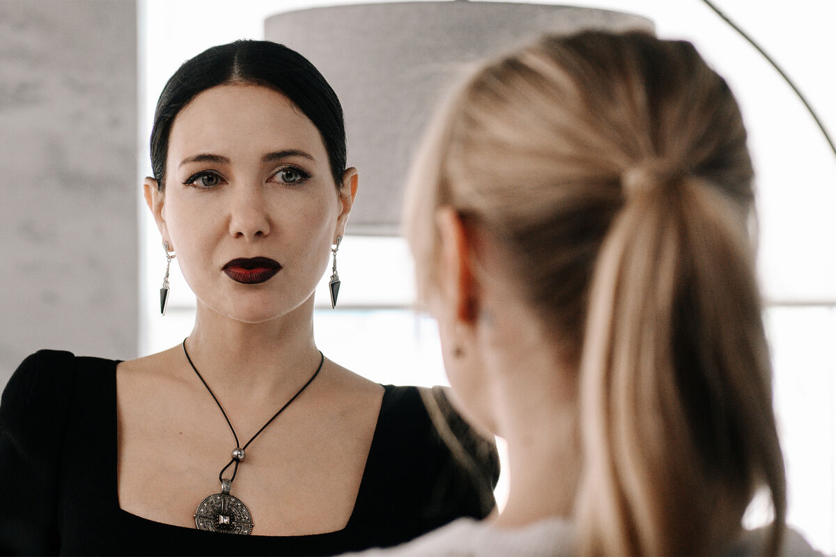 На первых кадрах со съемок Климова предстает в необычном амплуа — для роли Ведьмы она примерила образ готической дивы в духе «Семейки Аддамс».