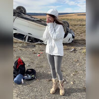 Она рассказала, что ДТП произошло из-за того, что у автомобиля лопнуло колесо из-за резкого перехода с асфальта на гравий при повороте. Когда машина перевернулась, то все, кто был внутри, начали быстро вылезать оттуда из-за боязни последующего взрыва.