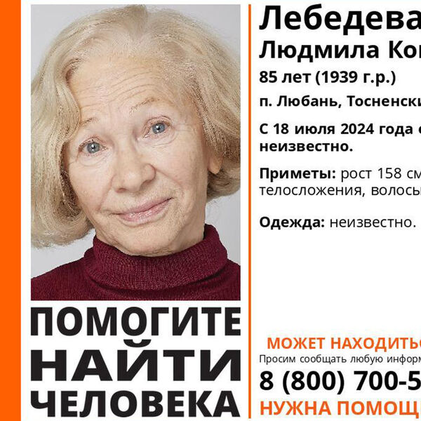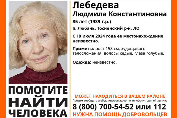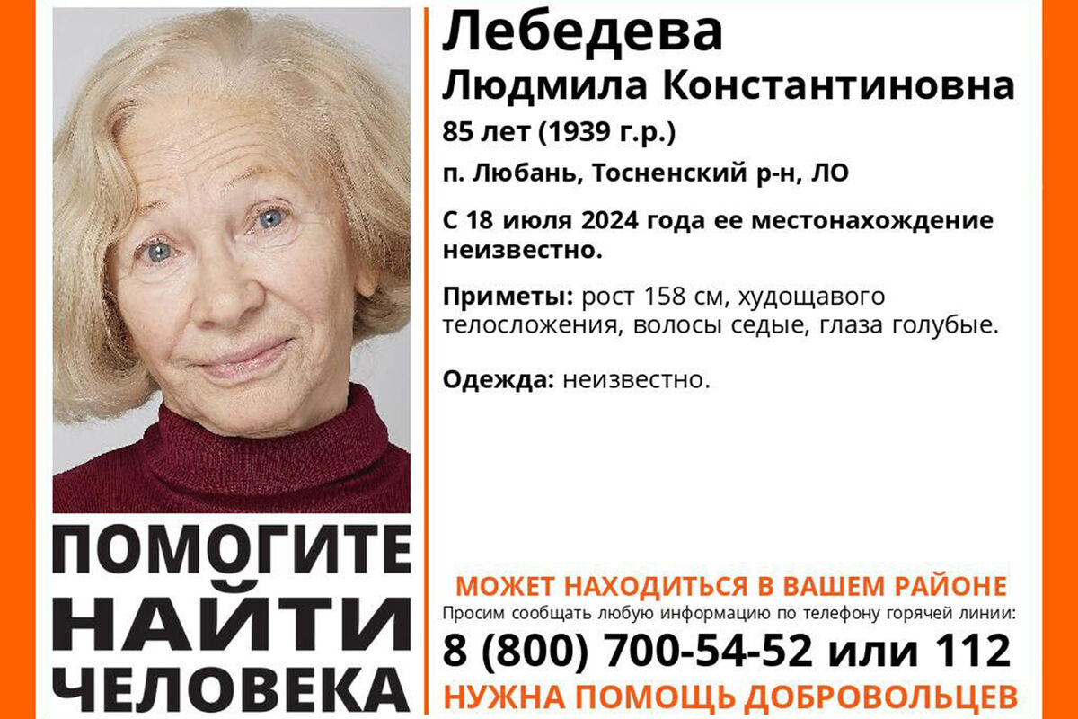 18 августа 2024 года Лебедева ушла из дачного дома в городе Любань Тосненского района.