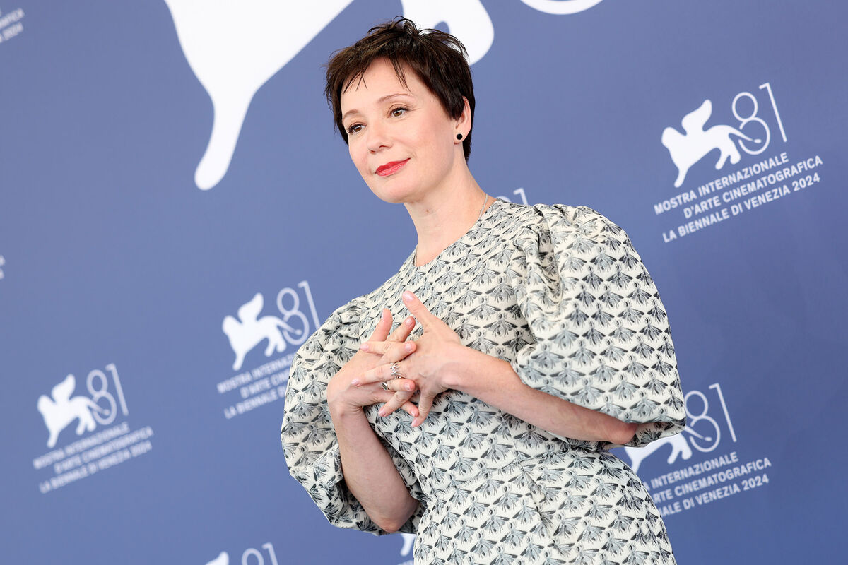 Актриса Чулпан Хаматова появилась на красной дорожке 81-го Венецианского кинофестиваля перед премьерой фильма «Тихая жизнь» режиссера Александроса Авранаса.