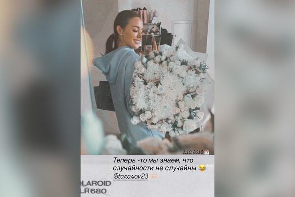 Костенко опубликовала архивное фото с большим букетом цветов от Тарасова. Снимок сделан 1 октября 2016 года. Модель намекнула, что на тот момент уже состояла в отношениях со спортсменом. Известно, что Тарасов развелся с Бузовой 30 декабря 2016 года.